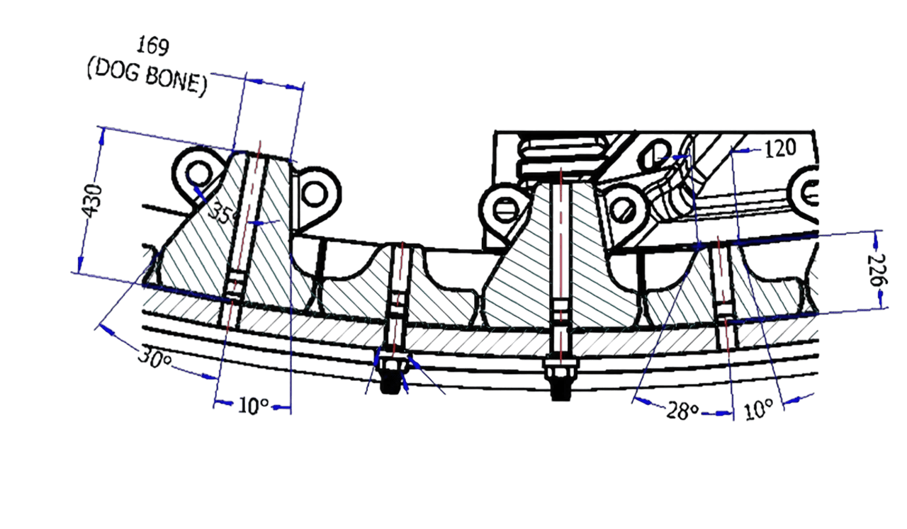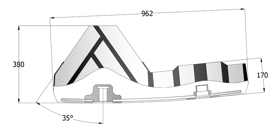 В конструкции приоритет отдается безопасности во время установки с болтовым креплением снаружи мельницы, что снижает риск при установке футеровки. Идеально подходит для больших форматных станков диаметром до 12 метров.